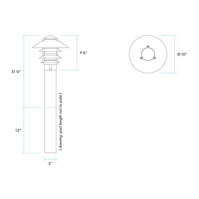 For the illumination of pathways and horizontal lighting, this low voltage, direct burial, tiered bollard fixture is constructed of die-cast, copper-free, aluminum and heavy gauge extruded aluminum. A super durable polyester powder-coat finish is applied and available in 18 colors. A prismatic, high-impact, polycarbonate lens is fitted to the housing with a flat neoprene gasket to ensure a weather-tight seal. The 9226 is not shipped with lamp, unless otherwise specified.