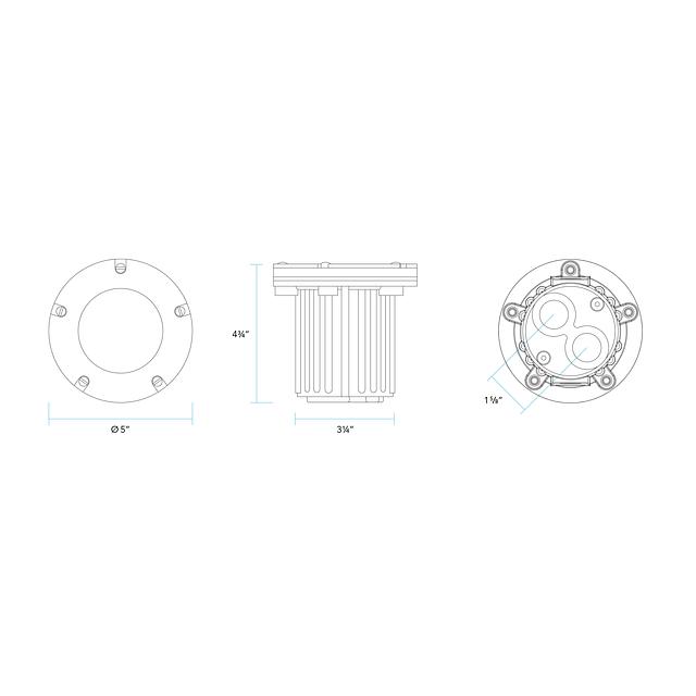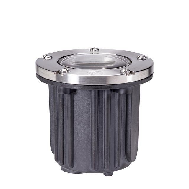This ruggedly designed low voltage in-ground fixture with a stainless steel trim ring is constructed of injection-molded, fiber-reinforced composite for strength and high UV stability and is warranted for ten years against corrosion. The convex lens is clear, high temperature tempered soda-lime glass for high-impact resistance, furnished with silicone molded gasket for a watertight seal. Also, an adjustable lamp bracket (not available with integrated LED) provides ±25° of tilt for precise beam control and locks into place preventing any disruption of lamp position during maintenance. The 5276-SS is shipped with no bulb unless otherwise specified.