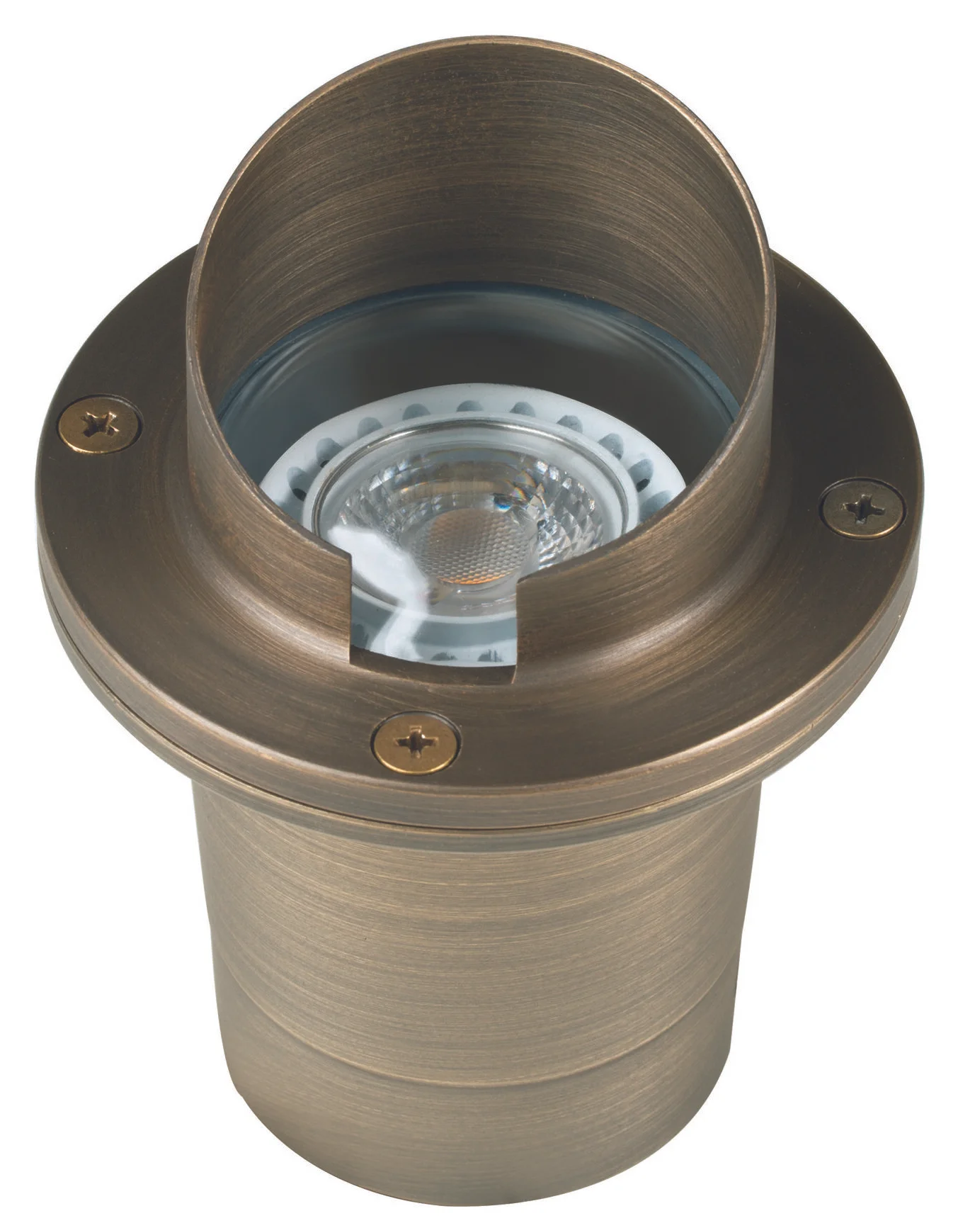 Hooded Well Light housed in Brass or Stainless Steel in Antique Bronze or Stainless Steel finish.