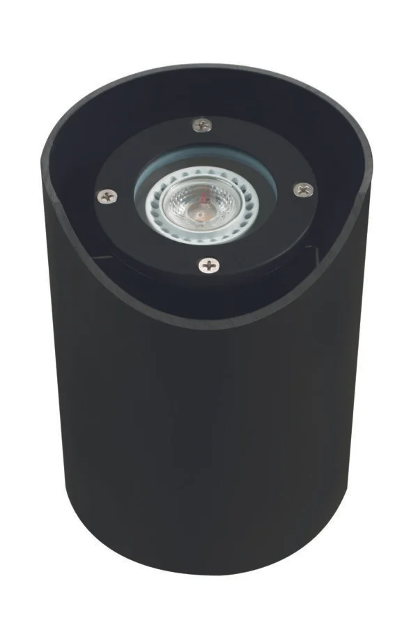 Housing : Suspended inside a reversible flat / angled cut PVC sleeve, providing in-ground support. Fixture is adjustable inside the PVC sleeve for light aiming.