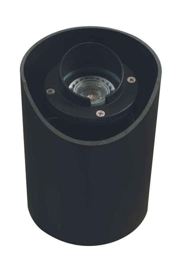 Housing : Suspended inside a reversible; flat or angled cut; PVC sleeve, providing in-ground support. Fixture is adjustable inside the PVC sleeve for light aiming.