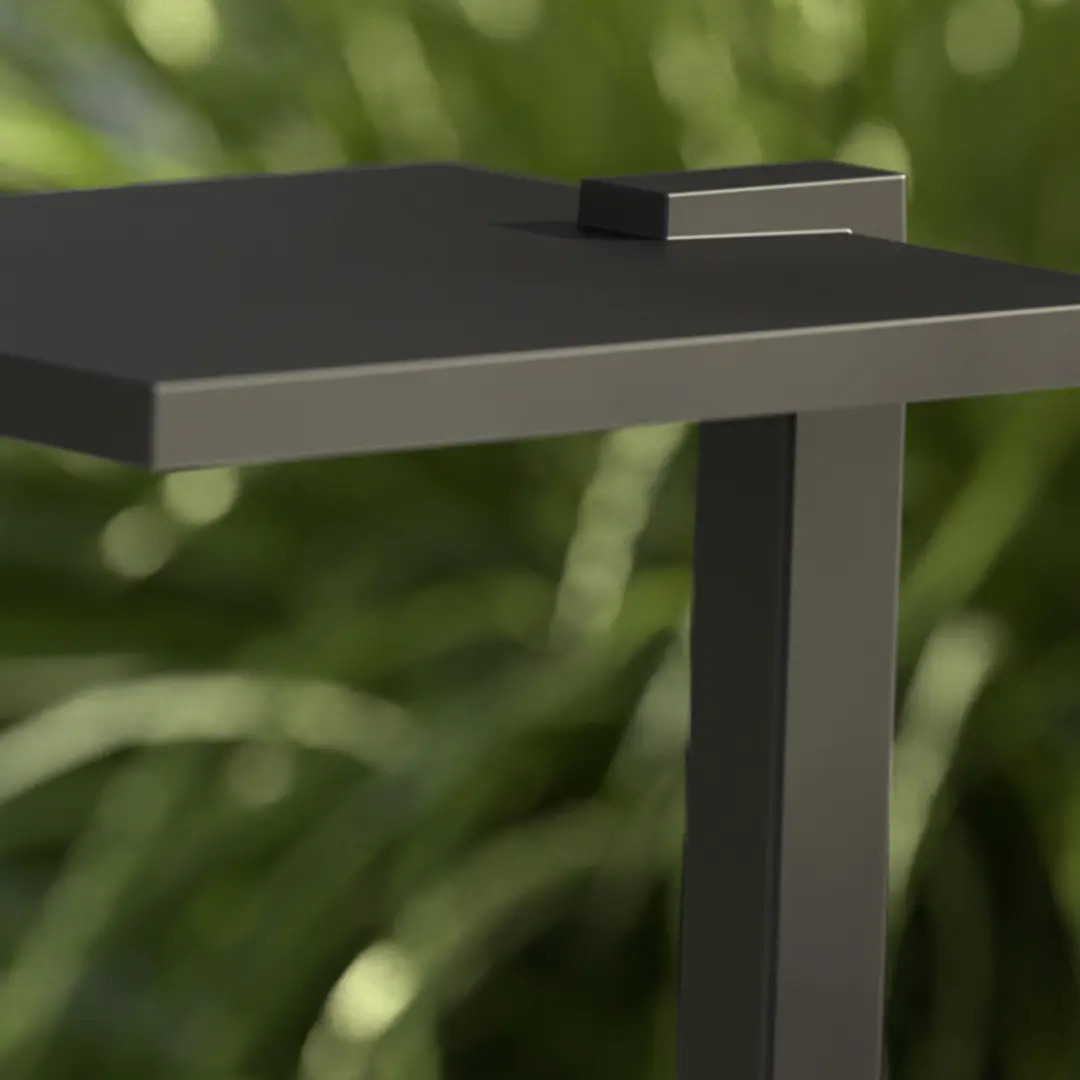 • Its contemporary design blends seamlessly with nature while spotlighting the surrounding exterior style