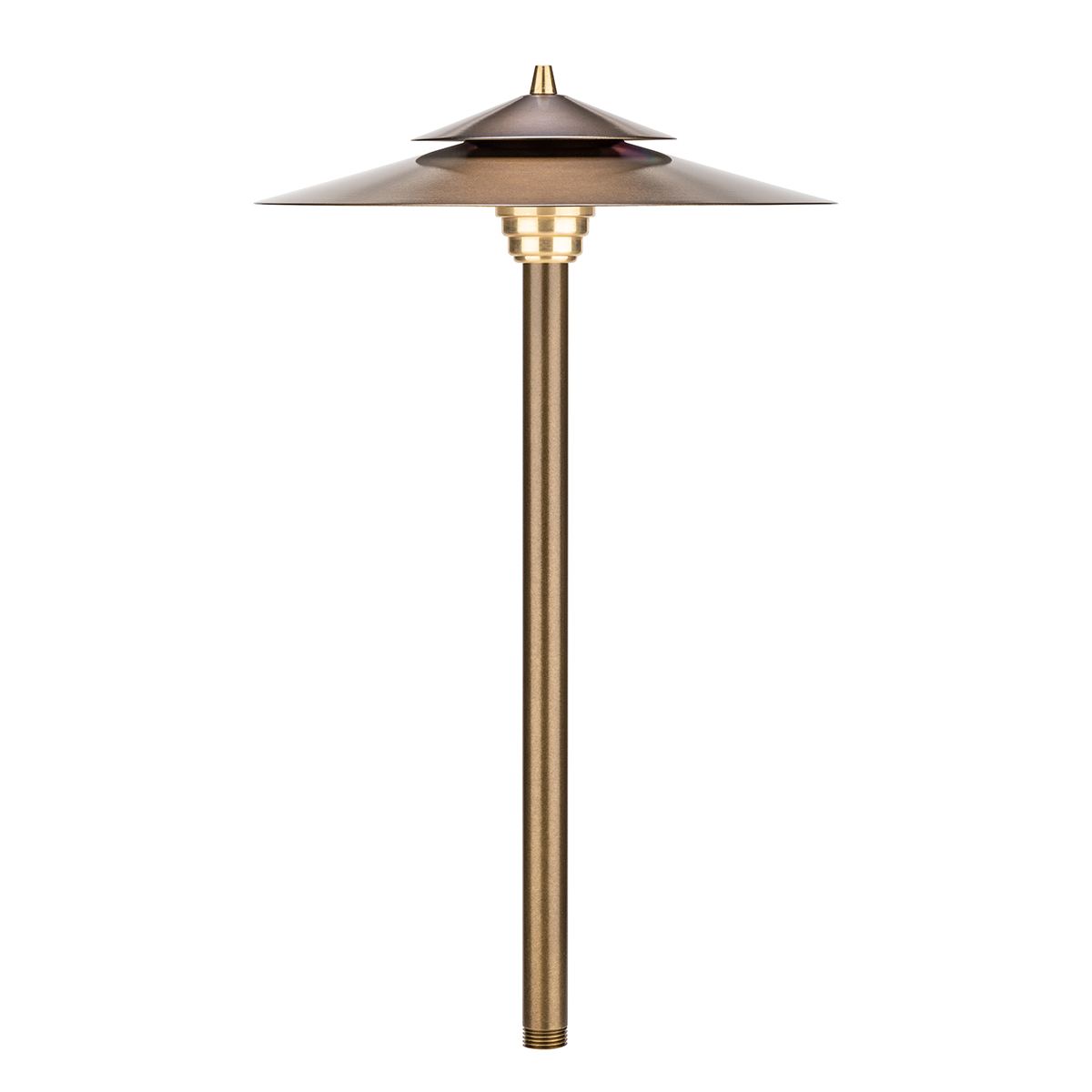 For accenting low flower beds or illuminating pathways, this low voltage path light fixture is constructed of solid spun brass. Vista’s Turn-To-Lock solid brass lamp base makes lamp maintenance simple and tool-free. The stem is a ½” heavy-gauge, brass extrusion with a ½” NPT. A wave shaped, textured "Panoramic Plus" Tuffak® lens maximizes light transmittance while safeguarding the lamp and optics.