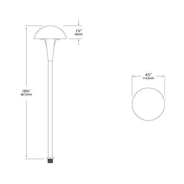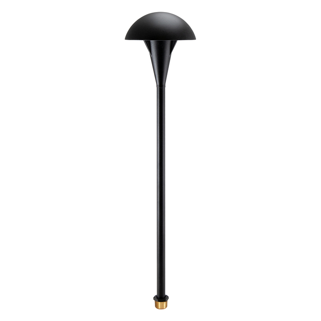 This elegantly designed low voltage path light fixture is constructed of die-cast, copper-free aluminum for strength and reliability. The stem is a ¼” schedule-40 aluminum pipe with a ½” NPT custom bushing designed with a stress-dispersing collar to ensure strength and stability for mounting. A super durable polyester powder-coated finish is applied and available in 18 colors. A clear, high impact, polycarbonate lens safeguards the lamp and optics. Mounting hardware is included – choice of ABS ground stake or mounting canopy.