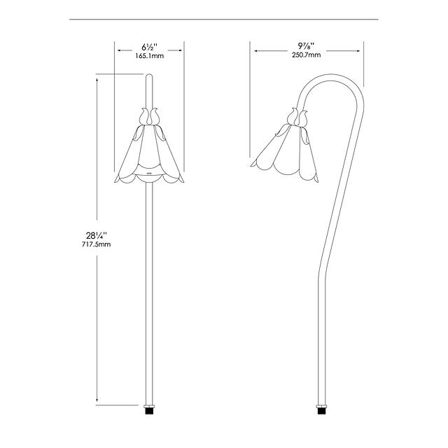 This elegantly designed low voltage path light fixture is constructed of die-cast, copper-free aluminum for strength and reliability. The stem is a ¼” schedule-40 aluminum pipe with a ½” NPT custom bushing designed with a stress-dispersing collar to ensure strength and stability for mounting. A super durable polyester powder-coated finish is applied and available in 18 colors. A clear, high impact, polycarbonate lens safeguards the lamp and optics. Mounting hardware is included – choice of ABS ground stake or mounting canopy.