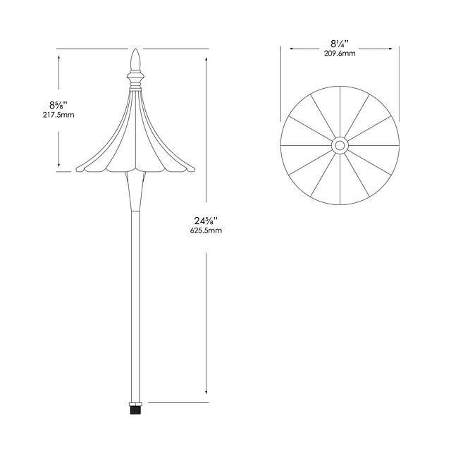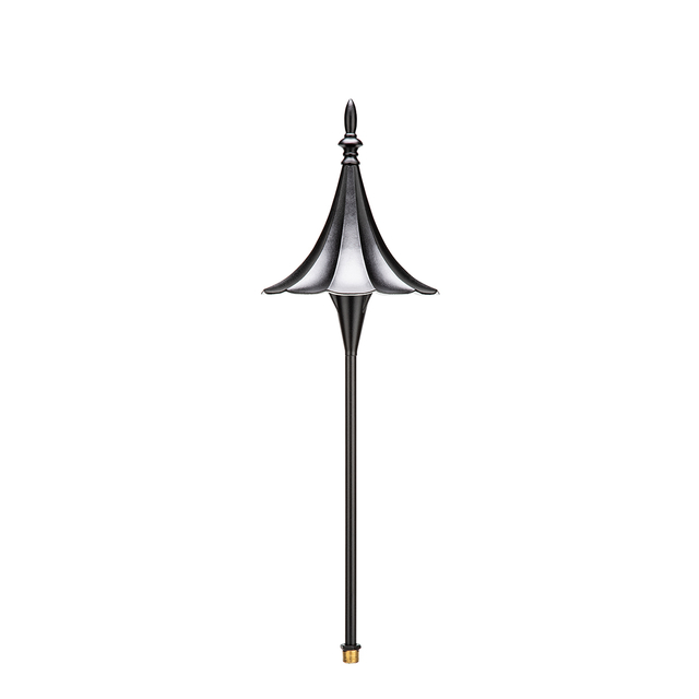 This elegantly designed low voltage path light fixture is constructed of die-cast, copper-free aluminum for strength and reliability. The stem is a ¼” schedule-40 aluminum pipe with a ½” NPT custom bushing designed with a stress-dispersing collar to ensure strength and stability for mounting. A super durable polyester powder-coated finish is applied and available in 18 colors. A clear, high impact, polycarbonate lens safeguards the lamp and optics. The 9215 does not include a lamp. Mounting hardware is included – choice of ABS ground stake or mounting canopy.