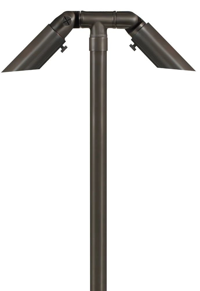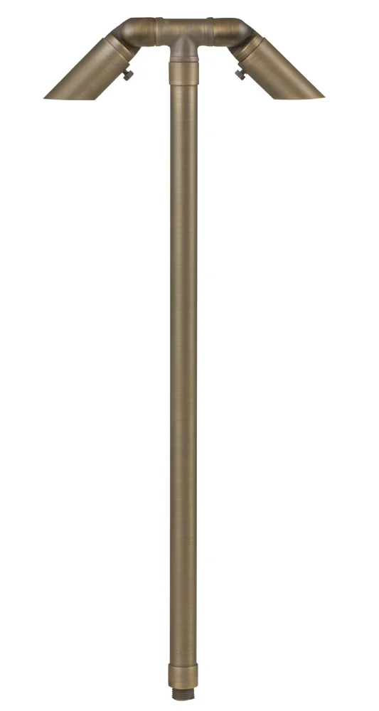 Brass Double Head Path light, with a 24″, 18″ or 12″ Stem. Finished in either Antique Bronze or Gun Metal.