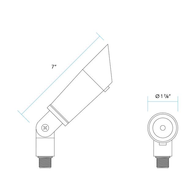 Compact and sleek, this low voltage up & accent fixture is constructed of die-cast, copper-free aluminum for strength and reliability. The fully rotatable shroud is fitted with a silicone o-ring gasket to ensure a superior weather-tight seal. A clear, tempered, shock and heat resistant soda-lime glass lens safeguards the lamp and optics. A super durable polyester powder-coated finish is applied and available in 18 colors. The intelligently engineered fully adjustable knuckle is made from injection-molded, fiber-reinforced composite which effectively isolates the fixture from the harmful corrosive soil. Mounting hardware is included – choice of ABS ground stake, mounting canopy, or tree-mount canopy.