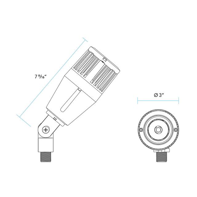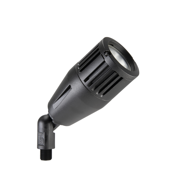 The 3107 is ready to install with factory fitted integrated high density array (HDA) LEDs. This low voltage up & accent fixture is configured with hi-performance reflector optics, integral drivers, and is constructed of die cast aluminum. These LEDs will be able to deliver comparable light levels in the 20W, 35W, and 50W halogen range (up to 800 lumens) with wattages ranging from 4.5W to 13W. The 3107 will be able to dim using the Vista vPRO electronic transformer and the complete line of Vista transformers. A patent-pending silicone diaphragm gasket allows the fixture to breathe during thermal cycling to prevent moisture from being drawn into the fixture. The door is designed to shed water from the lens surface. A durable polyester powder coat finish is applied and available in 18 colors. The fully adjustable knuckle is made from injection-molded, fiber-reinforced composite which effectively isolates the fixture from the harmful corrosive soil. Mounting hardware is included – choice of ABS ground stake, mounting canopy, or tree-mount canopy.