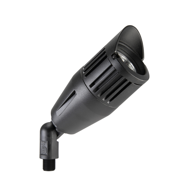 The 3108 is ready to install with factory fitted integrated high density array (HDA) LEDs. This low voltage up & accent fixture is configured with hi-performance reflector optics, integral drivers, and is constructed of die cast aluminum. These LEDs will be able to deliver comparable light levels in the 20W, 35W, and 50W halogen range (up to 800 lumens) with wattages ranging from 4.5W to 13W. The 3108 will be able to dim using the Vista vPRO electronic transformer and the complete line of Vista transformers. A patent-pending silicone diaphragm gasket allows the fixture to breathe during thermal cycling to prevent moisture from being drawn into the fixture. The door is designed to shed water from the lens surface. A durable polyester powder coat finish is applied and available in 18 colors. The fully adjustable knuckle is made from injection-molded, fiber-reinforced composite which effectively isolates the fixture from the harmful corrosive soil. Mounting hardware is included – choice of ABS ground stake, mounting canopy, or tree-mount canopy.