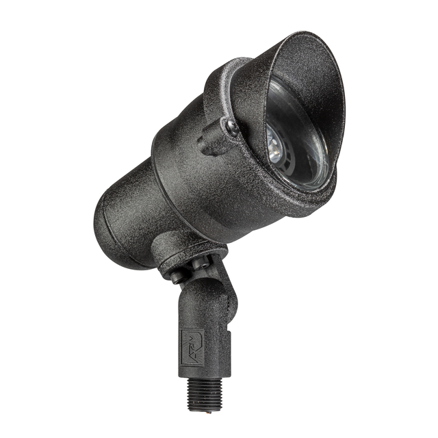 This contemporary designed low voltage up & accent fixture is constructed of injection-molded, fiber-reinforced composite for strength and high UV stability and is warranted for ten years against corrosion. The fully rotatable shroud is fitted with a silicone o-ring gasket to ensure a superior weather-tight seal. A clear, tempered, shock and heat resistant soda-lime glass lens safeguards the lamp and optics. A super durable polyester powder-coated finish is applied and available in 18 colors. The intelligently engineered fully adjustable knuckle is made from injection-molded, fiber-reinforced composite which effectively isolates the fixture from the harmful corrosive soil. Mounting hardware is included – choice of ABS ground stake, mounting canopy, or tree-mount canopy.