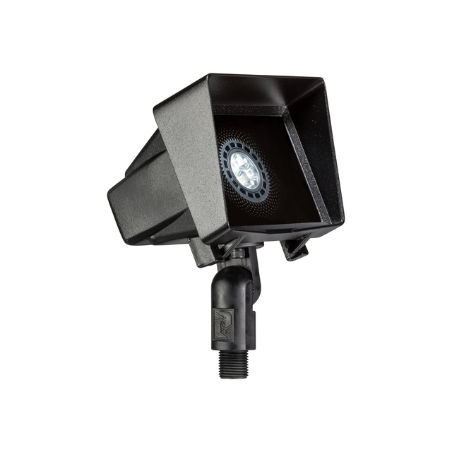 Powerful and compact, this low voltage flood light fixture is constructed of die-cast, copper-free aluminum for strength and reliability. The hinged shroud opens easily for lamp maintenance and is fitted with a silicone gasket to ensure a superior weather-tight seal under harsh conditions. A clear, tempered, shock and heat resistant soda-lime glass lens safeguards the lamp and optics. A super durable polyester powder-coated finish is applied and available in 18 colors. The intelligently engineered fully adjustable knuckle is made from injection-molded, fiber-reinforced composite which effectively isolates the fixture from the harmful corrosive soil. Mounting hardware is included – choice of ABS ground stake, mounting canopy, or tree-mount canopy.