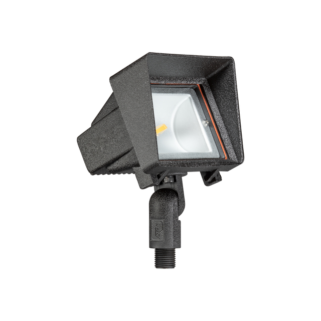 Powerful and compact, this low voltage flood light fixture is constructed of injection-molded, fiber-reinforced composite for strength and high UV stability and is warranted for ten years against corrosion. The hinged shroud opens easily for lamp maintenance and is fitted with a silicone gasket to ensure a superior weather-tight seal under harsh conditions. A clear, tempered, shock and heat resistant soda-lime glass lens safeguards the lamp and optics. A super durable polyester powder-coated finish is applied and available in 18 colors. The intelligently engineered fully adjustable knuckle is made from injection-molded, fiber-reinforced composite which effectively isolates the fixture from the harmful corrosive soil. Mounting hardware is included – choice of ABS ground stake, mounting canopy, or tree-mount canopy.