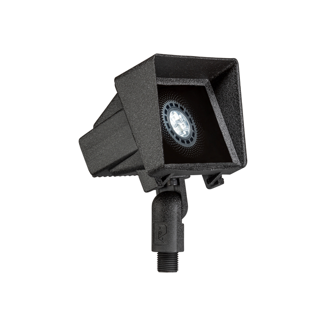 Powerful and compact, this low voltage flood light fixture is constructed of injection-molded, fiber-reinforced composite for strength and high UV stability and is warranted for ten years against corrosion. The hinged shroud opens easily for lamp maintenance and is fitted with a silicone gasket to ensure a superior weather-tight seal under harsh conditions. A clear, tempered, shock and heat resistant soda-lime glass lens safeguards the lamp and optics. A super durable polyester powder-coated finish is applied and available in 18 colors. The intelligently engineered fully adjustable knuckle is made from injection-molded, fiber-reinforced composite which effectively isolates the fixture from the harmful corrosive soil. Mounting hardware is included – choice of ABS ground stake, mounting canopy, or tree-mount canopy.
