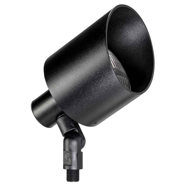 This distinctively designed low voltage up & accent fixture is a single-piece housing/shroud constructed of die-cast, copper-free aluminum for strength and reliability. A super durable polyester powder-coated finish is applied and available in 18 colors. The intelligently engineered fully adjustable knuckle is made from injection-molded, fiber-reinforced composite which effectively isolates the fixture from the harmful corrosive soil. Mounting hardware is included – choice of ABS ground stake, mounting canopy, or tree-mount canopy. Does not come with lamp.