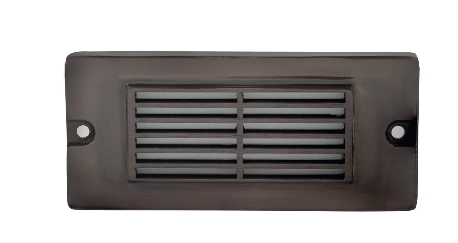 5½” Small Louvered Brass Backless Step Light, finished with Antique Bronze, Gun Metal or Silver Plated.