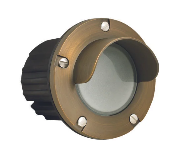 Step Light with a Brass Hooded Faceplate and Frosted Lens, Housed in an Injection-molded Composite Base, Finished in Antique Bronze or Gun Metal.