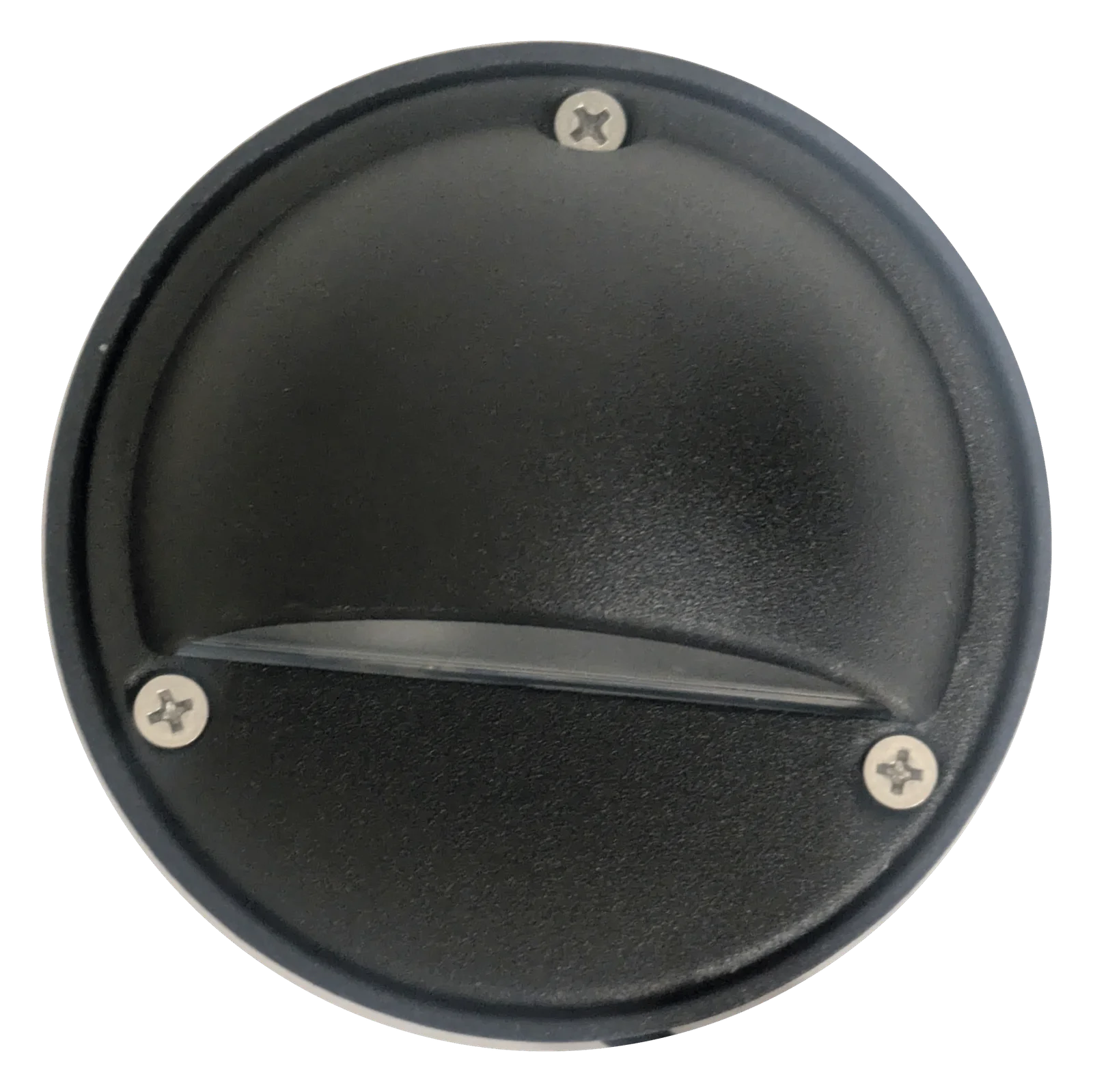 Aluminum Half-Moon Step Light, with a Polyester UV powder coated steel mounting box. Finished in Black.